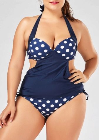 Per le donne piene, sarà utile considerare modelli solidi e chiusi che aiutano a stringere la pancia e puoi anche usare il pareo. Mayo, Halter e Tank avranno un bell'aspetto su questo tipo di figura.