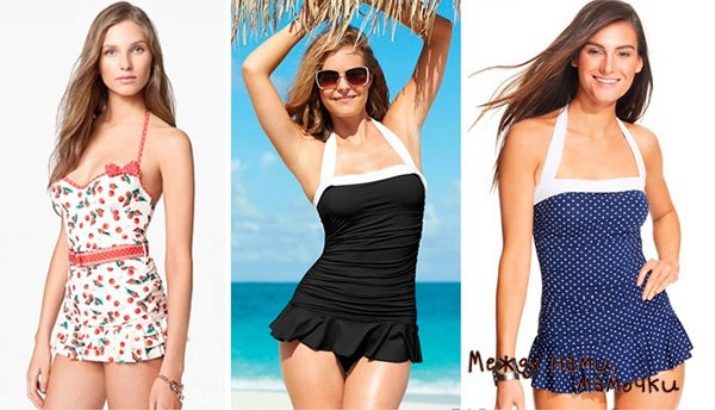 La differenza principale di un tale costume da bagno è che ha una gonna, il più delle volte si trova sulle mutandine, meno spesso - sulla parte superiore. Il modello è perfetto per le donne con problemi all'anca e alla vita. Inoltre, è comodo da usare, anche solo per rilassarsi nella natura. La parte inferiore del costume da bagno è ampia.