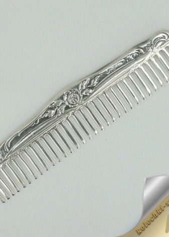 L'argento è un metallo prezioso. Questi pettini sono diversi dai modelli semplici con una brillante brillantezza. Non sono economici, ma con la cura adeguata, il prodotto manterrà la sua bellezza per molti decenni e persino secoli. In modo che i pettini non perdano la loro attrattiva e raffinatezza, dopo l'uso vengono puliti con polvere di denti (viene spesso sostituito con soda).