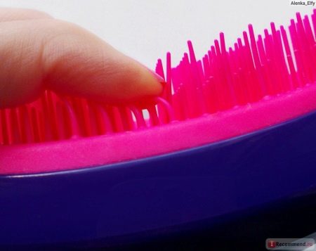 I denti sul prodotto sono disposti in più file, per cui anche i capelli lunghi possono essere facilmente districati, tuttavia, tale struttura complica il processo di pulizia. Per sbarazzarsi di sporco avrai bisogno di alcol. Strofinano il prodotto per rimuovere il grasso. Lavorare con un pennello e mezzi saponati pulirà facilmente il pettine dallo sporco.
