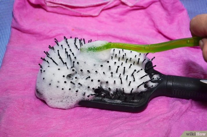 Si consiglia di immergere il pettine in acqua tiepida, ma questo può essere fatto solo se se il materiale di cui è fatto non è in conflitto con l'acqua. Successivamente, otteniamo la piccola cosa e la elaboriamo con un pennello e un sapone.Alla fine, lascia asciugare il pettine.