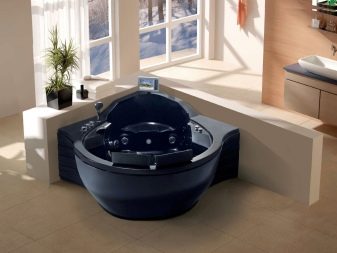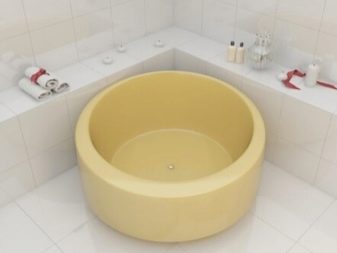 - Vasca rotonda Sembra davvero lussuoso e di solito ha dimensioni piuttosto grandi. Per enfatizzare l'efficacia di tale progetto, viene spesso installato sul podio. Inoltre, un tale modello ha funzioni aggiuntive, come il massaggio.