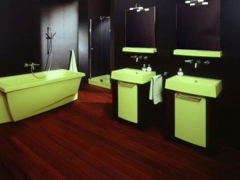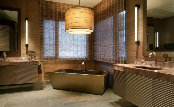 - Così popolare oggi ecologico richiederà un bagno marrone chiaro o verde. Può essere combinato con successo con legno, pietra, bambù nella decorazione.