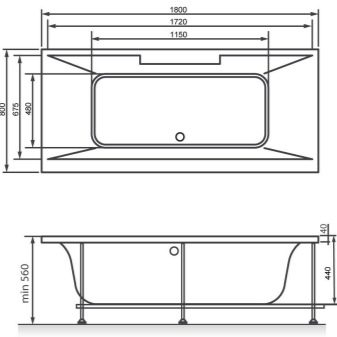 Per esempio la dimensione standard di una vasca rettangolare è una lunghezza da 1,2 a 1,8 metri e una larghezza da 0,7 a 0,8 metri. Ci sono più disegni complessivi, 190 cm o più, tutto dipenderà dalla scala della stanza stessa. L'altezza ottimale del bagno è di 65-70 cm, ma di nuovo ci sono altri parametri.