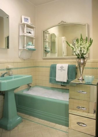 - stile retrò aprirà ai suoi proprietari una vera piattaforma per la creatività. Qui puoi scegliere una vasca da bagno di qualsiasi colore, soprattutto, essere in grado di combinarla con la decorazione.