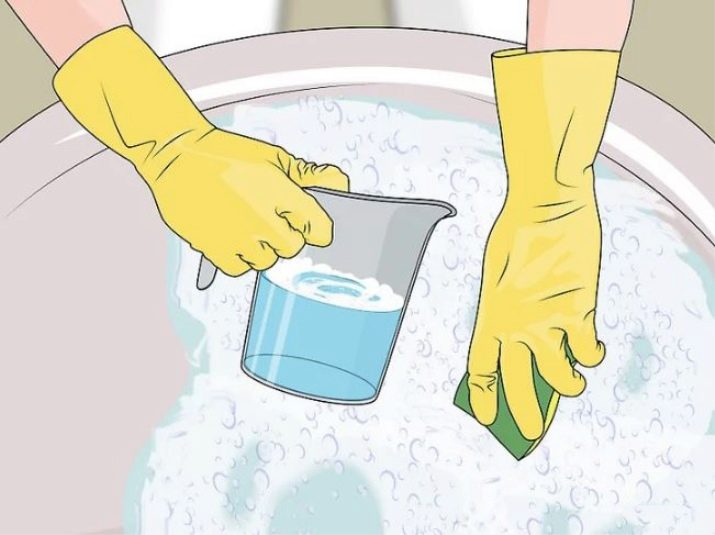 - Per rimuovere le macchie ostinate, è necessario mescolare mezzo bicchiere d'acqua, 4 cucchiai di detersivo per piatti e un cucchiaino di ammoniaca. La miscela viene applicata sulla macchia e lasciata per mezz'ora, dopo di che viene accuratamente lavata via con acqua e asciugata con un panno.
