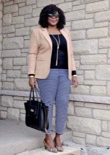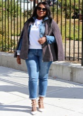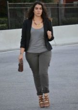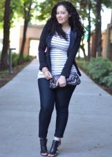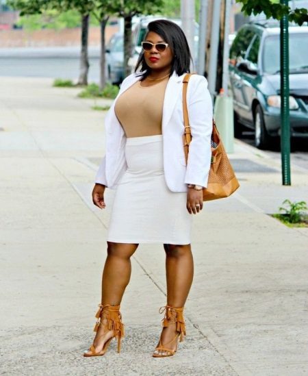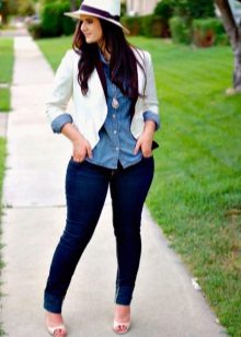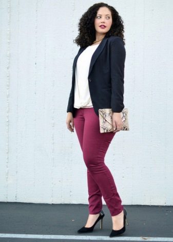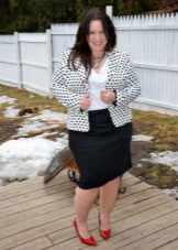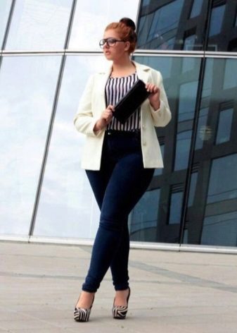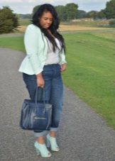 - Giacche aderenti con zeppe sono perfette per le donne con fianchi eccezionali: indossale in un completo con un vestito o una gonna dal taglio dritto. Questa combinazione corregge visivamente le proporzioni.