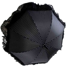 Il modello scuro, completato da volant, è progettato esclusivamente per le fashioniste audaci e sicure. Tali prodotti erano follemente popolari in un lontano passato. Nessun guardaroba femminile può fare a meno di un dettaglio così civettuolo. Attualmente, tali ombrelli non sono pratici e svolgono solo una funzione decorativa.