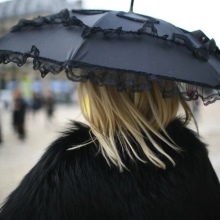 Non esiste un accessorio più affascinante e civettuolo di un ombrello. Un dettaglio così interessante può effettivamente trasformare un abito da donna. Il bellissimo ombrello nero ha uno speciale chic ed eleganza.