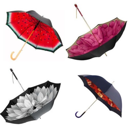 Oggi, gli scaffali dei negozi sono pieni di ombrelloni spettacolari e molto belli, sia in uno stile laconico che con elementi decorativi luminosi. Consideriamo più in dettaglio le soluzioni di design più popolari.