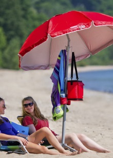 Nella sabbia devi scavare un buco stretto, ma abbastanza profondo. La base dell'ombrello deve essere installata nella sabbia con un'angolazione laterale da dove soffia il vento. Quindi, versando un po 'd'acqua nel foro, è necessario seppellirlo. Successivamente, è necessario annaffiare di nuovo dall'alto per garantire una buona densità di sabbia. Solo così la parte principale dell'ombrello con la cupola può essere inserita nella base. Se è molto ventoso, allora è meglio abbassare la cupola dell'ombrello in modo che non porti via un forte impulso.
