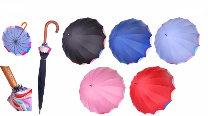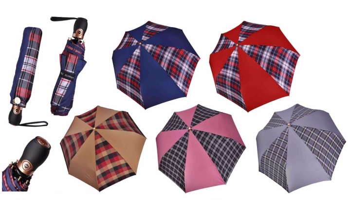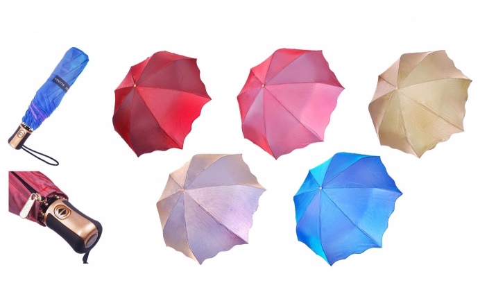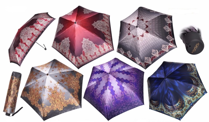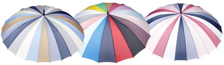 Allo stesso tempo, gli ombrelli da donna sono rappresentati in modo più ampio e vario. La collezione, progettata per il gentil sesso, si distingue per la grazia e una vasta selezione di colori e fantasie.