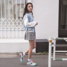 - בהיעדר קוד לבוש, ספורט מזדמן יהיה אופציה נהדרת לעבודה. ז'קט עור בהיר, חולצת טריקו מודפסת ומכנסיים קצוצים צמודים נראים טוב עם נעלי ספורט לבנות שלג.
