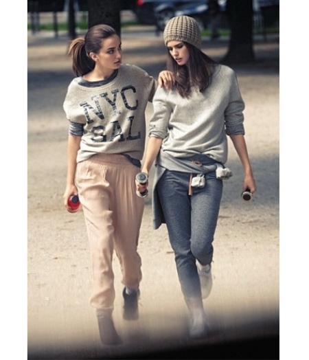 ג'ניפר לופז וריהאנה לעתים קרובות למדי ניתן לראות בחותלות צמודות. סלינה גומז ומדונה יודעות בדיוק איך להיראות שיק אפילו במכנסי זיעה. גוון סטפאני משתמשת בהצלחה בז'קט מפציץ כדי ליצור את המראה המסוגנן שלה, וביונסה וג'סיקה אלבה מראים על פי הדוגמא שלהם כי סווטשירט אופנתי נראה טוב עם חצאיות בסגנונות שונים.