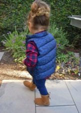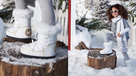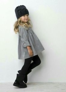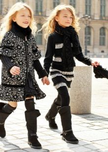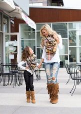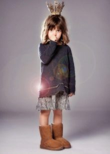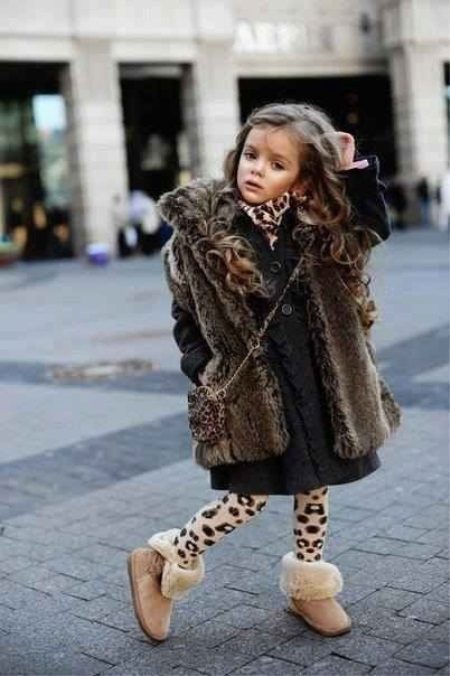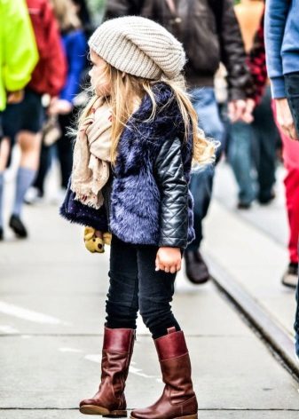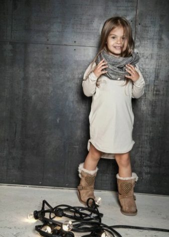 Ugg, bateliai ir aukšti batai mielai atrodo su vaikišku kailiniu paltu ir ilga striuke.
