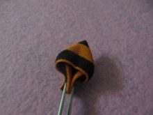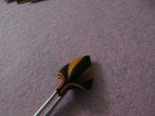 Atskiri juostos fragmentai yra sulankstyti į kilpą su gražiu apvalinimu, o atjungtas dugnas dekoratyviai susiraukšlėja ir pritvirtinamas sulydymo būdu, o visas perteklius sutrumpinamas. Rezultatas yra žvaigždės galiukas - ji nėra plokščia, tačiau „triukas“ yra tiksliai savo tūriu. Gauti penki žiedlapiai yra priklijuojami vienas prie kito, kad būtų žvaigždės formos, centras papuoštas mygtuku - kiek įmanoma oranžinis.