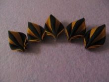 Juodos spalvos kvadratai atlieka tas pačias operacijas kaip ir oranžinės. Gauti ruošiniai sulankstyti į tris dalis taip, kad juodasis žiedlapis būtų oranžinės spalvos viduje, o ant viršaus eina dar viena apelsina. Išvestis yra septyni trispalviai žiedlapiai - kad jie priliptų, jie yra kruopščiai klijuojami.