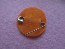 Pagrindinis kaspino fragmentas yra gražiai suformuotas „apykakle“. Galinėje pusėje prie konstrukcijos pritvirtintas veltinio ratas su apsauginiu kaiščiu, kuris tuo pačiu išlaikys juostos formą. Jis pats yra suprojektuotos žvaigždės atrama - ji yra klijuojama arba taip pat tvirtinama segtuku. Originali sagė yra paruošta!