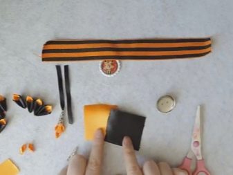 Jurgio kaspinas gali būti sėkmingai naudojamas žvaigždei formuoti - tada dekoracijoje bus du simboliai, neatsiejamai susiję su pergale. Reikia šių medžiagų: pats Šv. Jurgio kaspinas (5 11 cm ilgio gabalėliai, geriausia 2,5 cm pločio ir atskiras platus fragmentas pagrindui), veltinio apskritimas ir sagas su koja.