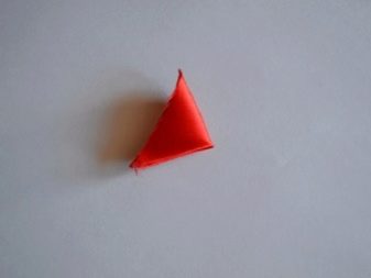 Satino įvairiaspalvės juostelės supjaustomos kvadratais, iš kurių kiekvienas turėtų virsti žiedlapiu. Norėdami tai padaryti, fragmentas yra sulankstytas per pusę įstrižai, aštrūs jo kampai yra sujungti, sudarant savotišką krepšį, ir sujungiami į ugnį. Buvusio trikampio viršus yra sklandžiai supjaustytas, kad linijos būtų minkštos, pjūvis taip pat apdorojamas ugnimi, kad siūlai nesubyrėtų. Pabaigoje turėtų būti šešiolika tokių žiedlapių - vienodai juodi ir oranžiniai.