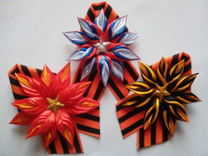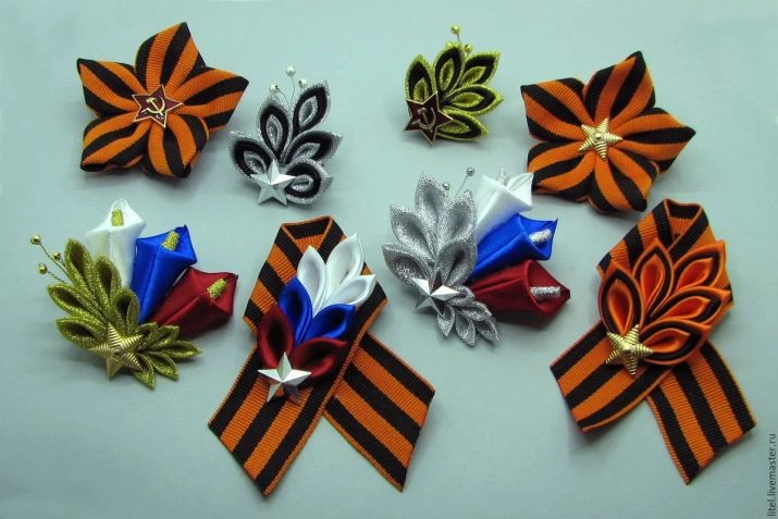 „Kanzashi“ yra kūryba. Įgijusi techniką ir į ją įkišusi ranką, amatininkė gali sugalvoti ir įgyvendinti savo papuošalų variantus, įskaitant gegužės 9 d. Mes pasirinkome keletą gražių tokių amatų pavyzdžių - jie visi yra sudėtingesni nei aprašyti aukščiau. Bet tada jie parodo, kokias aukštumas galima pasiekti su užsidegimu.