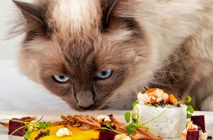 Birmos katėms patiekti maistą „nuo stalo“ draudžiama. Taip pat jos racione neturėtų būti aštraus ir rūkyto maisto. Natūralų maistą galite maišyti su kokybišku. Pigūs pašarai gali pakenkti virškinimo trakto veiklai.