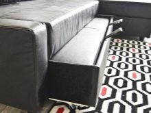 Toliau siūloma susipažinti su stumdomos kampinės sofos dizainu, kur lengvai telpa vienas žmogus. Pati konstrukcija pagaminta iš medinės konstrukcijos su metalo transformacijos mechanizmu, kuris gali patikimai tarnauti ilgą laiką. Sofos apmušalai yra pagaminti iš eko odos su putplasčio užpildu.