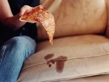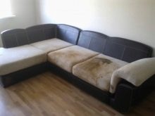 - Minkšto virtuvės kampo paviršiaus valymo procesas bus sudėtingasjei jo apmušalai yra pagaminti iš audinio medžiagos. Mes kalbame apie riebias dėmes, kavos ar arbatos lašus, taip pat sultis ir kitus produktus.