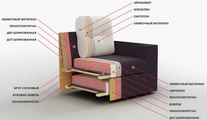 Kuriant kampines sofas, daug dėmesio skiriama sėdynių užpildams, tarp kurių yra keletas medžiagų rūšių, kurių paklausa yra didžiulė. Visų pirma, galite paskambinti putų guma. Medžiaga yra gana pigi, tačiau daugeliu atžvilgių prastesnė už konkurentus.