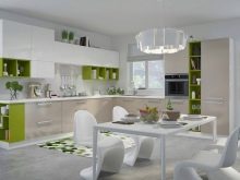 Virtuvės komplektas, įskaitant baltus baldus, reikšmingai pakeis kambarį. Jis paimamas paruoštas arba pagamintas pagal konkretų užsakymą.