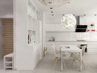 Paprastai specialistai, kuriantys stiliaus sritis, baltą spalvą laiko daugiafunkcine. Tai pritraukia dėmesį ir vizualiai išplečia kambarį. Jei virtuvė užpildyta didelių gabaritų baldais, sukuriama atmosfera, kuri neigiamai veikia žmogaus emocinę būseną. Todėl virtuvės apdailai su tokiais baldais naudojamos šviesios spalvos, ypač dėl to, kad jos suteikia galimybę atsipalaiduoti.