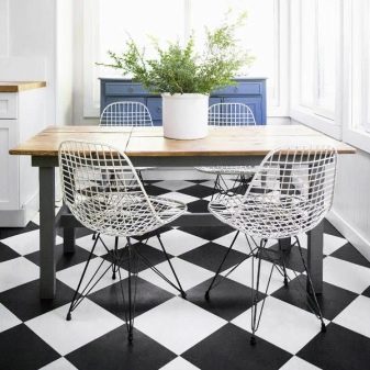 - Ypatingas vaizdas sukuriamas dedant plyteles ant grindų šaškių lentos modeliu.
