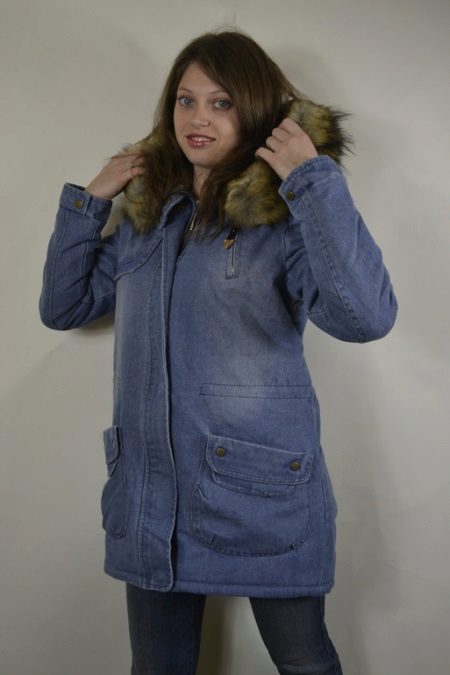 Norėdami padengti visą klubus, pailgas džinsinis švarkas su kailio pamušalu bus puikus pasirinkimas. Savo išvaizda ji daug kuo primena paltą.