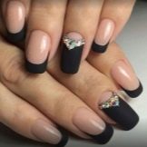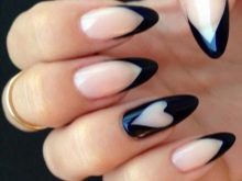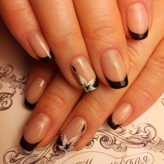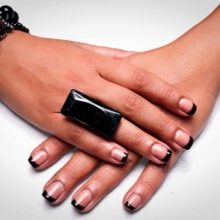 Nagų priežiūros ir grožio pramonės profesionalų meistrai pasiūlykite du juodo prancūziško manikiūro su nuotrauka projektavimo metodus: