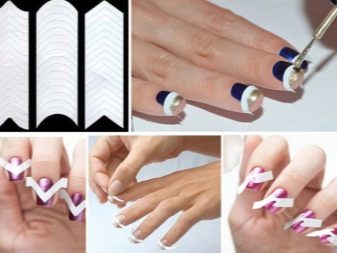 - Naudojant trafaretą. Kaip pagalba gali veikti specialus trafaretas (arba šablonas). Pavyzdžiui, beveik kiekvienoje kosmetikos parduotuvėje galite rasti specialias juosteles ant lipnios juostos, kurių pagalba net neįgudęs pradedantysis galės pasidaryti tvarkingą prancūzišką manikiūrą.