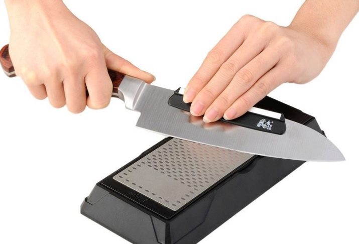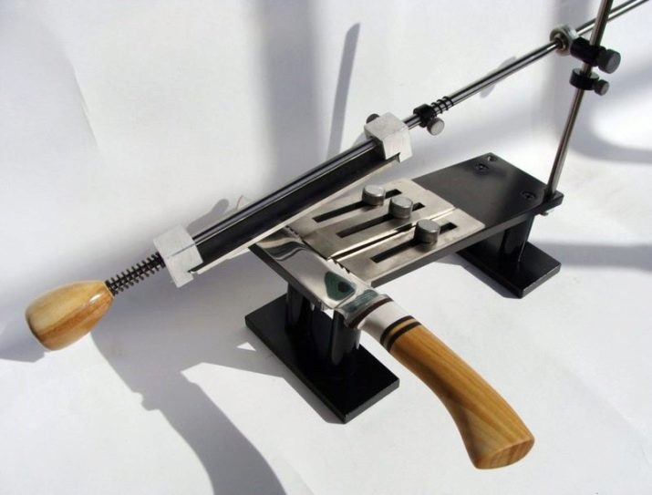 Jei neturite įgūdžių teisingai sukti peilius ir nežinote, kokiu tiksliai kampu reikia laikyti įrankį ir atlikti judesį, tada tai padarys specialus įtaisas. Tokie „automobiliai“ neužima daug vietos ir yra atvejis, slepiantis vidų, ir šone esantis akmuo, padarytas žiedo pavidalu. Ši forma padeda jam laisvai ir tolygiai paskirstyti darbinius konstrukcijos elementus visame peilio paviršiuje. Žiedas tiesiog sukasi pakankamu greičiu, ir viskas.