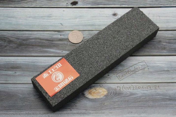 Toks akmuo turi būti naudojamas kartu su specialia alyvos baze. Žinoma, yra ir jo vidaus analogų, pagrįstų keramika, tačiau originalas bus geriausias pasirinkimas. Beje, japoniško akmenuko atveju labai svarbus jo plokščias paviršius. Galite tai patikrinti tokiu būdu: sušlapinkite vieną pusę ir pritvirtinkite prie popieriaus lapo. Jei spausdinimas ant popieriaus yra tolygiai ir tolygiai paskirsto pėdsakus visame paviršiuje, tada įrankis yra aukštos kokybės.