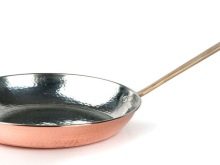 - Vario dengimas. Tai taip pat turi didelių išlaidų. Tokios keptuvės greitai įkaista, ilgą laiką sulaiko šilumą, maistas nedega, danga atspari pažeidimams. Varinių paviršių keptų blynų kokybė ir skonis turi subtilumo ir elegancijos. Tačiau yra ir trūkumų: priklausomai nuo naudojimo dažnumo, variniai indai yra linkę tamsėti.
