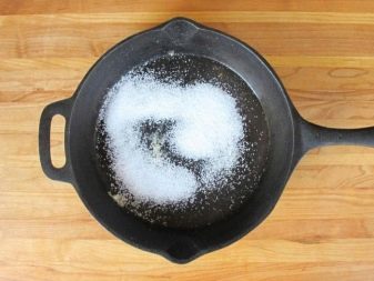 Jei produktas yra naujas, tada jį reikia nuplauti ir leisti išdžiūti. Po to keptuvę valandą reikia kalcinuoti su druska. Norėdami tai padaryti, galite naudoti orkaitę. Praėjus valandai, indus reikia atvėsinti ir apibarstyti druska. Po šių manipuliacijų užpilkite šiek tiek aliejaus ir palaikykite ant ugnies apie 20 minučių. Šie veiksmai reikalingi kepant blynus ant ketaus indų. Jei patiekalai nėra nauji, tada kiekvieną kartą, kai kepate blynus, užtenka pirmiausia greitai kepti keptuvę su druska, o paskui su augaliniu aliejumi, 10-15 minučių reikės atlikti visas manipuliacijas.