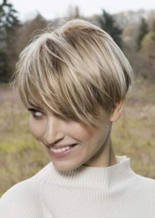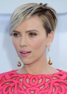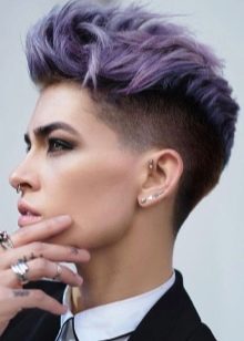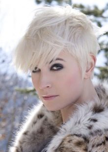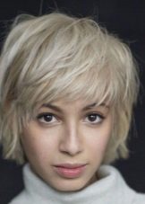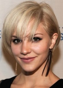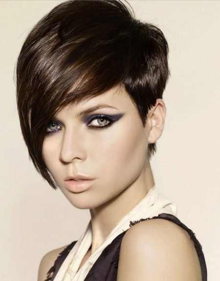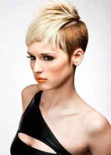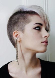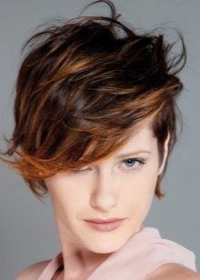 - Trumpas kirpimas su ilgiausiais kirpčiukais. Išlenktas iš vienos pusės ir sklandžiai išdėstytas, ilgas sprogimas su trumpu kirpimu atrodo labai įspūdingai ir sukuria savotišką paslaptingą flera aplink jo savininką. Tai nereiškia, kad tai yra patogi šukuosena kiekvienai dienai, bet vakarėliui ar socialiniam renginiui - puikus pasirinkimas.