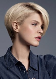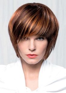 - Stačiakampis Trumpo šukuosenos su šia veido forma užduotis yra vizualiai sumažinti pailgą kontūrą ir šiek tiek pašviesinti aukštą kaktą, pridedant apimties šonuose. Tai geriausia padaryti su apvaliais kirpimais: skrybėlė, klasikinis kvadratas, bob-kvadratas, puslapis.