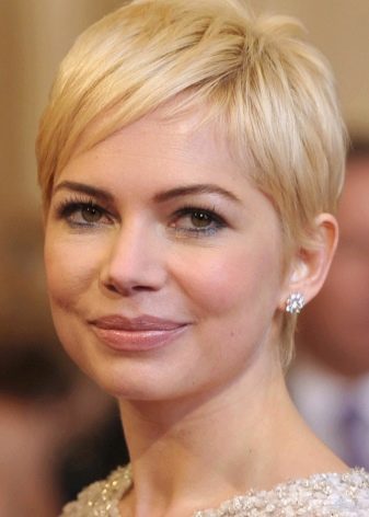 - Apvalus. Naudojant šį tipą, geriau pasirinkti asimetrinius kirpimus su nuostabiu vainiku ir nulukštentomis sruogomis, kurios vizualiai šiek tiek ištempia veidą. „Garson“, „bob-car“ ir „pixie“ yra tobuli. Kirpčiukai geriausiai klojami vienoje pusėje. Su apvaliu veidu, nerekomenduojami tokie kirpimai, kaip lapas, "seansas" ir klasikinis kvadratas su tiesia kirpčiuke.