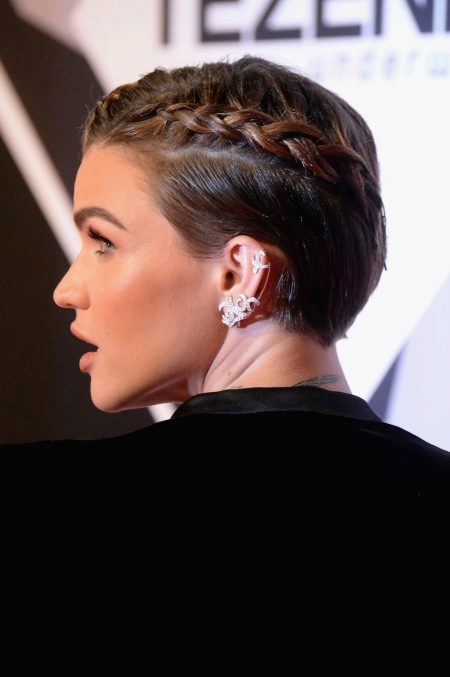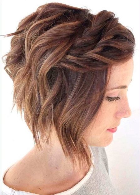 - Trumpas kirpimas su pynėmis. Labai moteriškas ir neįprastas stilius trumpam kirpimui. Ši šukuosena puikiai tinka iškilmingam išėjimui ir kiekvienai dienai.