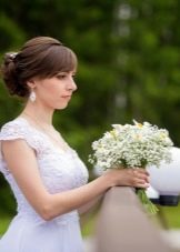 Dažnai nuotakos, kurios vestuvėms pasirenka šukuosenas, nerimauja, kad šis kirpimo elementas netelpa į šventės temą. Tačiau situacija yra visiškai kitokia. Pavyzdžiui, retro stiliaus vestuvėms pažodžiui reikia sprogimo. Kaip alternatyva, jis gali būti susuktas aplink kaktą, sukurdamas didelius garbanos iš likusių plaukų. Kitu atveju visi plaukai sudedami į aukštą babetę, surišami tinkamu kaspinu, o tvarkingi kirpčiukai lieka nepakitę. Be to, galite padaryti aukštą uodegą. Vestuvių šukuosenos boho šventė taip pat negali išsiversti be sprogimo.Paprastai plaukai priekyje yra tvarkingai sukrauti iš abiejų pusių ir pritvirtinti nematomais, kad netrukdytų. Likusi masė sudaro natūralias garbanas.