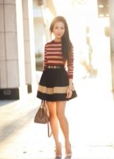 Jau padarykite juosmenį, tačiau tuo pačiu metu modelis su plačiu diržu padės išlaikyti klubų spindesį. Kalbant apie dažymą, šiam stiliui idealiai tiks trys ar keturios horizontalios horizontalios horizontalios juostos.