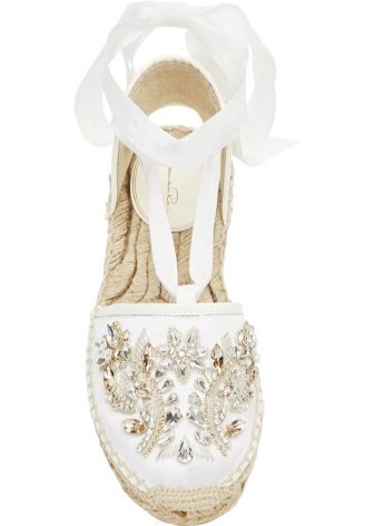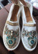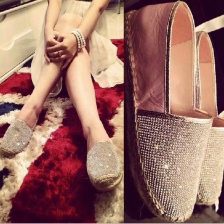 Baudiet neticamos modeļa panākumus ar rhinestones.Akmeņi, kas tonim atbilst pašu espadrilles krāsai, izskatās visskaistākie, tieši šajā versijā tie izskatās kā mazi glīti rasas pilieni, kas izskatās ļoti neparasti.