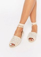 Mežģīņu espadrilles izskatās ļoti neparasti, kas arī ir daudz vieglāki nekā jebkurš auduma modelis. Smalkākās mežģīnes ir diezgan izturīgas un izturīgas pret nodilumu, jo tās ir izgatavotas no elastīgām šķiedrām. Turklāt kombinācijā ar elegantiem izšuvumiem un maziem fliteriem šis modelis izskatās vienkārši neticami.