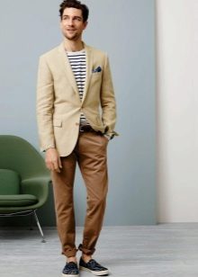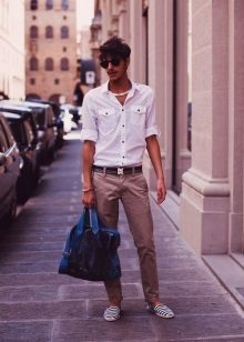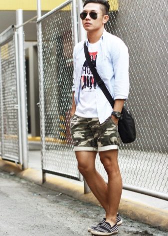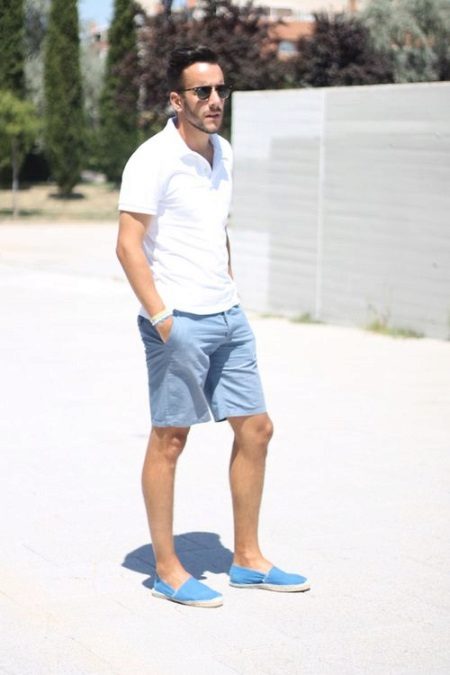 Jūs varat izveidot stilīgu vīrieša vasaras izskatu, apvienojot espadrila auduma modeli, vieglu monofonisku t-kreklu vai kokvilnas kreklu ar īsu piedurkni, kā arī vieglus šortus ceļgala garumā vai piecus līdz septiņus centimetrus augstāk.