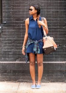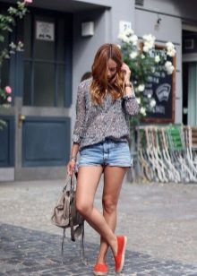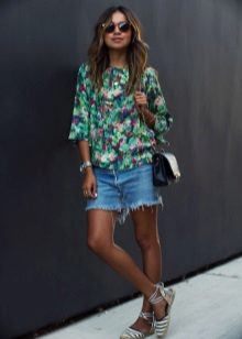 Papildiniet šo izskatu ar iegareniem, nolauztiem džinsa šortiem un baltu tvertni un zilu apdrukātu ādas jaciņu. Šim apģērbam lieliski derēs liela soma ar spilgtu rudzupuķu zilu nokrāsu, apvienojumā ar aveņu espadrilām ar džinsa zeķīti.