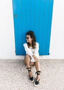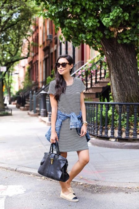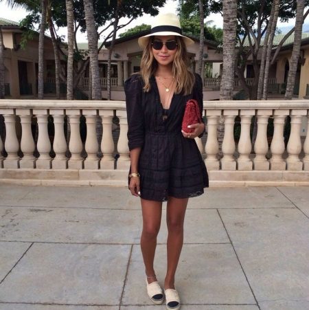Espadrilas skaisti un harmoniski saplūst ar gaišām kleitām. Darīs kleita, kas izgatavota no gaisa šifona, no gaišas kokvilnas auduma un cieši pieguļoša modeļa no trikotāžas, un pat stilīga minikleita, kas izgatavota no blīva materiāla.